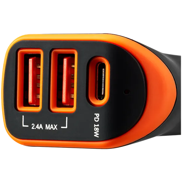 Εκτός από τις δύο τυπικές θύρες USB-A, αυτός ο μετασχηματηστής είναι εξοπλισμένος με μια θύρα USB-C που υποστηρίζει την τεχνολογία Power Delivery. Τώρα μπορείτε να φορτίζετε συσκευές χρησιμοποιώντας καλώδιο USB type-C απευθείας από την πρίζα του αυτοκινήτου όσο το δυνατόν πιο γρήγορα και με ασφάλεια. Η τεχνολογία Smart IC βοηθά στην παροχή του βέλτιστου ρεύματος και τάσης εξόδου για κάθε συνδεδεμένη συσκευή. Ο φορτιστής είναι εξοπλισμένος με όλα τα είδη προστασίας, συμπεριλαμβανομένης της προστασίας από υπέρταση και βραχυκυκλώματα. Αυτός ο μετασχηματηστής μπορεί να χρησιμοποιηθεί σε αυτοκίνητα που υποστηρίζουν ηλεκτρικό δίκτυο 12V και 24V.
