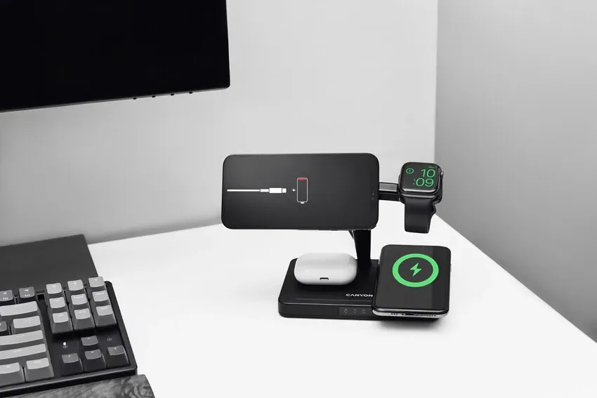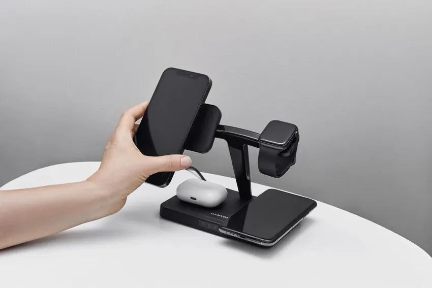 Αυτός ο σταθμός ασύρματης φόρτισης θα σας επιτρέψει να φορτίσετε τα gadgets σας γρήγορα και με ασφάλεια και να απαλλαγείτε από τα άχρηστα καλώδια στο γραφείο σας. Μπορείτε να φορτίσετε έως και 4 συσκευές ταυτόχρονα, συμπεριλαμβανομένων 2 smartphones, ένα από τα οποία είναι μέσω μαγνητικής ασύρματης μονάδας. Χάρη στο έξυπνο τσιπ «Bland», κάθε συσκευή ανατίθεται η βέλτιστη παροχή ρεύματος κατά τη φόρτιση. Ως αποτέλεσμα, οι μπαταρίες των gadgets δεν υπερθερμαίνονται, πράγμα το οποίο σημαίνει πως διαρκούν πολύ περισσότερο. Ο σταθμός είναι συμβατός με οποιοδήποτε smartphone και ακουστικά που υποστηρίζουν το πρότυπο Qi. Μπορείτε να φορτίσετε επίσης τα smartwatches της σειράς Apple Watch από 2 έως 7. Ένα εξαιρετικό gadget για όσους αγαπούν την τάξη και εκτιμούν τον μινιμαλισμό!
