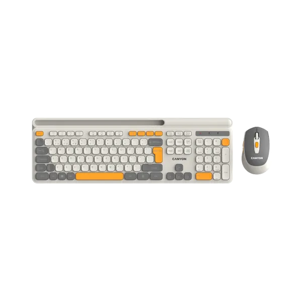 Μπείτε στον κόσμο της ασύρματης μαγείας με το συνδυασμό πληκτρολογίου και ποντικιού Canyon! Ένας χώρος εργασίας χωρίς ακαταστασία περιμένει. Το πληκτρολόγιο θα είναι ο συνεργάτης παραγωγικότητάς σας, με διάταξη πλήρους μεγέθους με 105 πλήκτρα, συμπεριλαμβανομένων συντομεύσεων πολυμέσων για υπερσυμπιεστή της ροής εργασίας σας. Οι διακόπτες πλαισίου ψαλιδιού προσφέρουν μια αθόρυβη εμπειρία πληκτρολόγησης, ώστε να μπορείτε να εστιάσετε στις εργασίες σας χωρίς ενοχλητικό χτύπημα. Αυτοί οι διακόπτες είναι επίσης ισχυροί: 10 εκατομμύρια πληκτρολογήσεις μέχρι να φορέσετε ένα διακόπτη έξω. Με την εργονομική του διάταξη, αυτό το πληκτρολόγιο κάνει την πληκτρολόγηση να αισθάνεται σαν αεράκι σε μια ηλιόλουστη μέρα. Τι γίνεται με το ποντίκι; Είναι ένας πολύ καλός σύντροφος για εσάς και το πληκτρολόγιό σας, έχοντας σιωπηλούς διακόπτες και ταιριαστό σχεδιασμό. Η μαλακή επίστρωση από καουτσούκ είναι ανθεκτική και απαλή στην παλάμη σας. Διαθέτει έξι κουμπιά και το DPI είναι επίσης ρυθμιζόμενο. Τροφοδοτείται από τυπικές αλκαλικές μπαταρίες, αυτό το σετ φαραγγιών είναι πάντα έτοιμο για δράση. Δείτε τρεις μοναδικούς συνδυασμούς χρωμάτων όπου το ποντίκι ταιριάζει πάντα με το πληκτρολόγιό σας. Κόψτε το καλώδιο και απολαύστε την ελευθερία με το Canyon hset-W5 wireless combo!